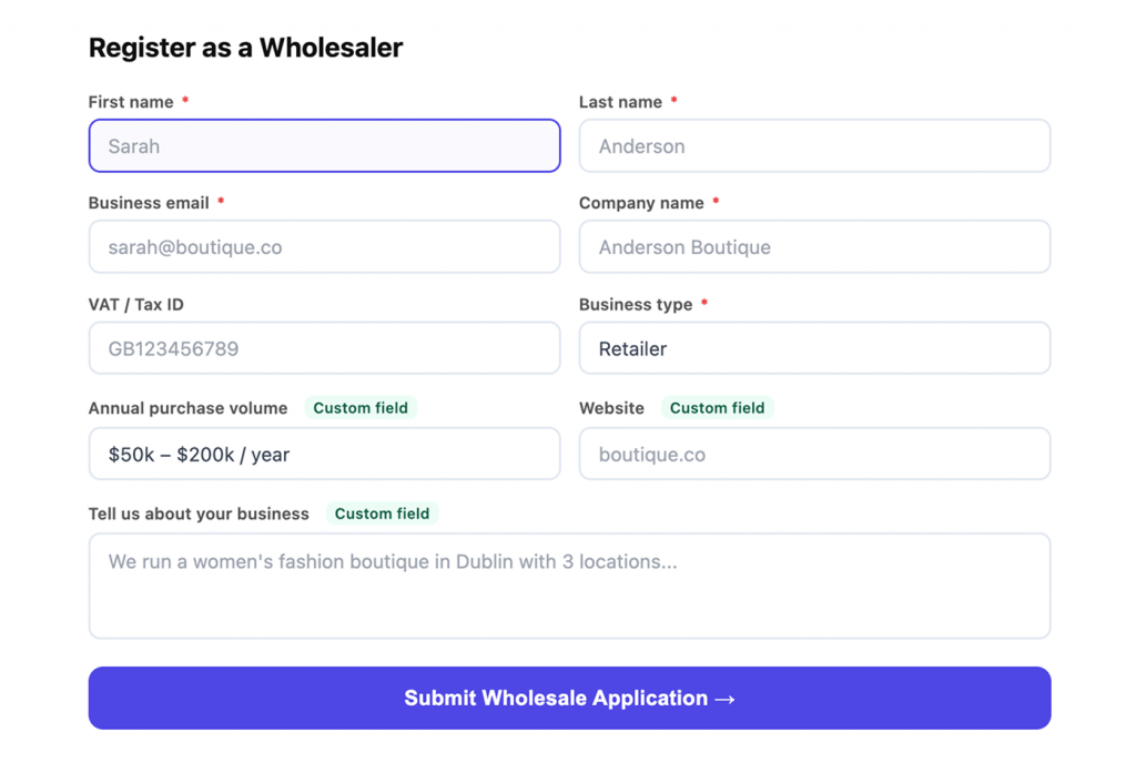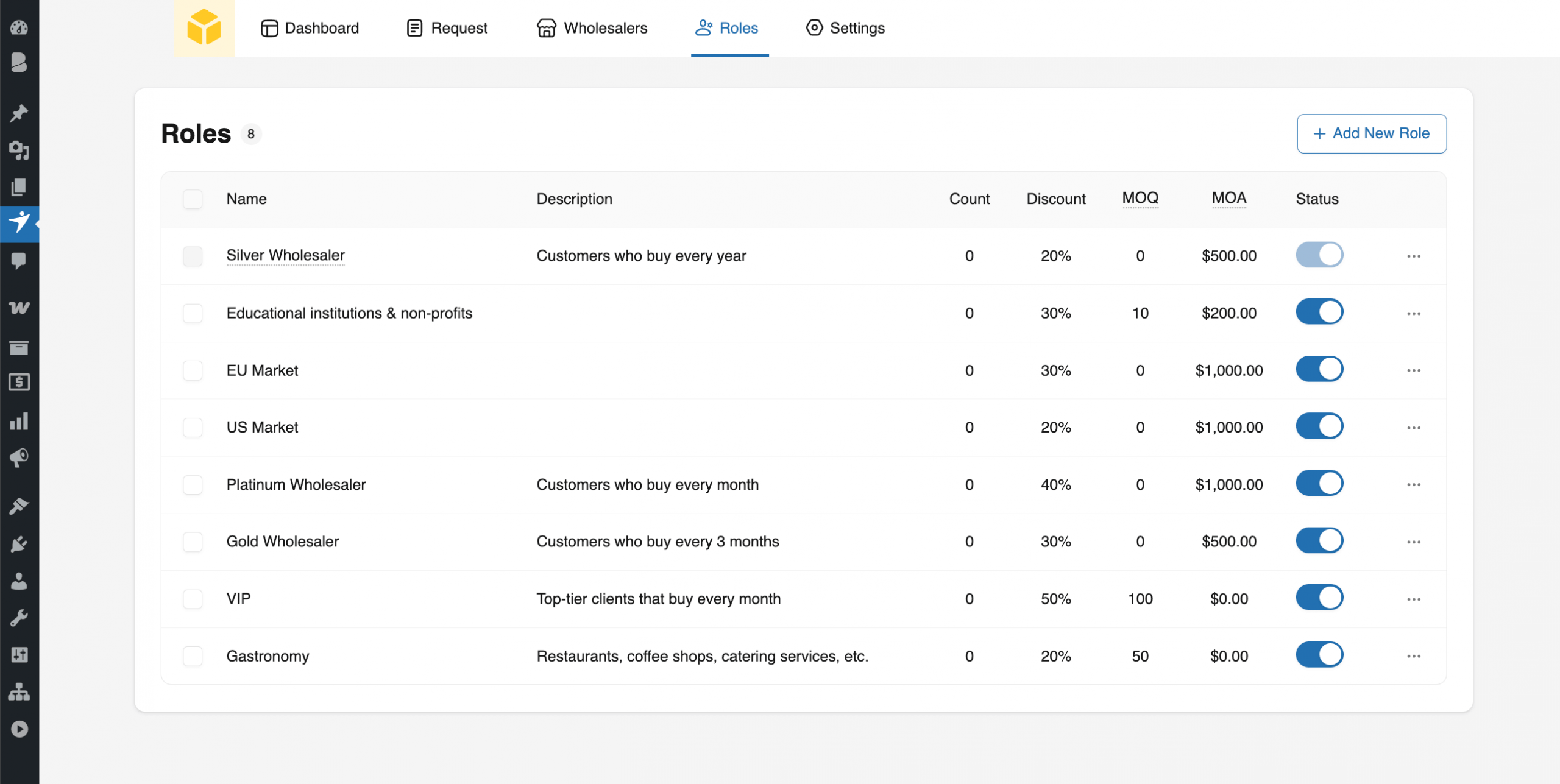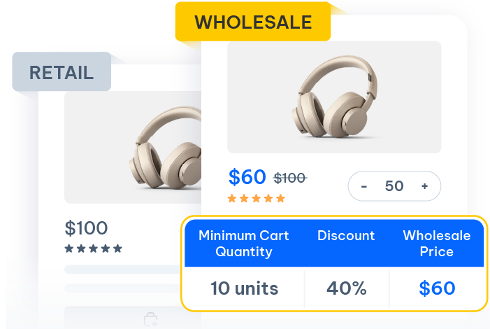 Offer special pricing to B2B clients, manage wholesale registrations, and track wholesale performance.